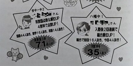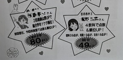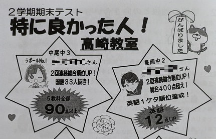 2学期期末テストで特に良かった塾生。